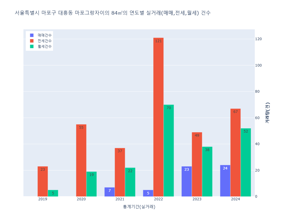 (5) 단지 전용 84㎡ 매매/전세/월세 거래건 수