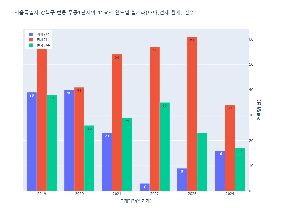 2) 단지 전용 41㎡ 매매/전세/월세 거래건 수