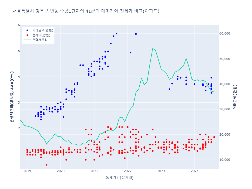1) 단지 전용 41㎡ 매매가격/전세가격