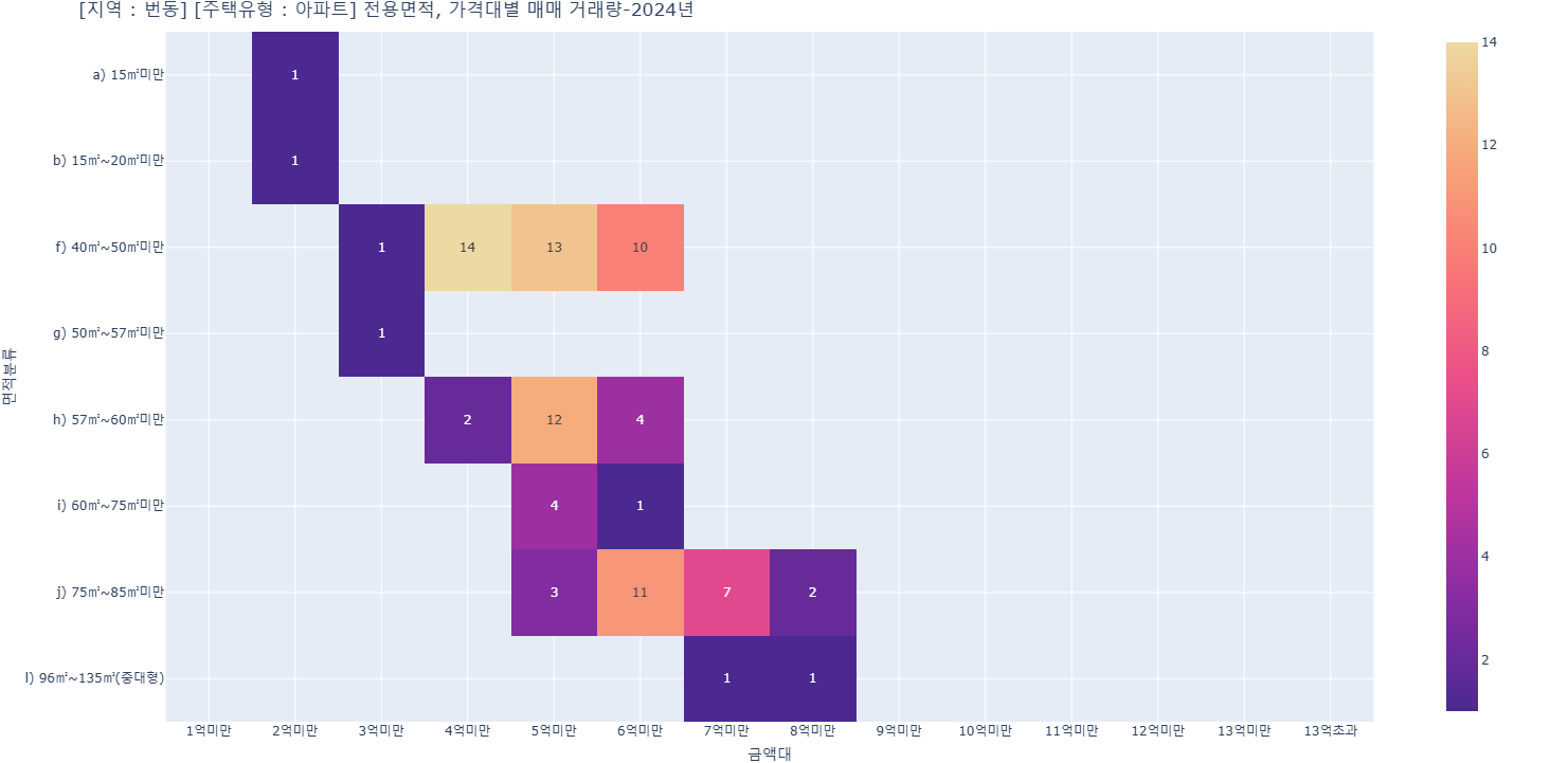 (1) 전용면적, 아파트 가격대별-매매 거래량(2024년)