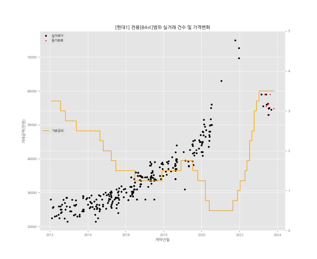 서울시 은평구 신사동 359에 위치한 새절역현대(현대1) 아파트의 전용 84㎡타입의 실거래, 전세, 월세 현황을 현시점에서 분석합니다. 1. 단지 개요 세대수 445세대(총5개동) 저/최고층 12층/15층 사용승인일 1997년 09월 25일 총주차대수 282대(세대당 0.63대) 용적률 242% 건폐율 21% 건설사 현대건설(주) 난방 개별난방, 도시가스 관리사무소 02-373-2920 주소 서울시 은평구 신사동 359 면적 대분류 1타입 2. 매매가격과 전세가격 (기준 - 전용면적 : 84㎡) 전세대출금리 : 2012년 국토해양부 보도자료, 2013~14년 주담대금리적용, 2015년 이후 한국은행 전세대출금리(신규) [최고 실거래가] 2021년 10월 : 75,000만원 [최근 실거래가] 2023년 9..