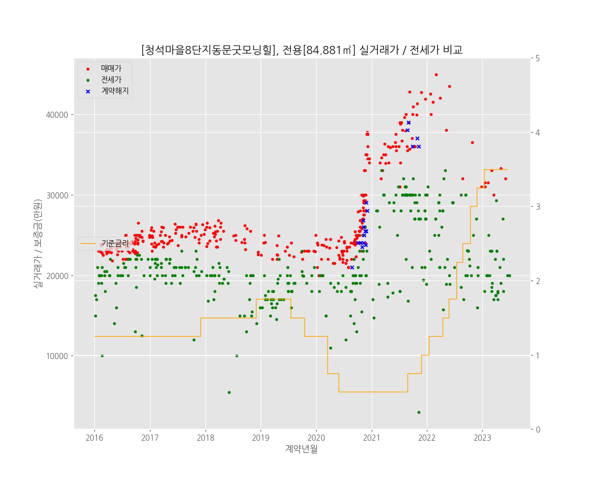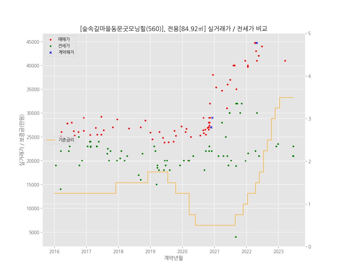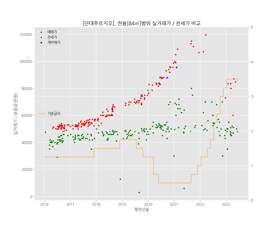 아파트 및 빌라 등 주택의 구입 및 전세를 구할 때, 가격의 적정성을 판단하기 위한 자료를 제공해 드립니다. 2016년부터 현재까지의 흐름과 "시군->동 단위"의 거래를 한 번에 볼 수 있도록 보고서 형태를 일원화하여, 보기 편리하도록 합니다. [ 23/6/12 ~ 23/7/15 ]까지 개발한 내용은 모두 보고서에 표시됩니다. - 표시정보 중 면적은 "전용면적" 기준입니다. 네이버, 다음 부동산 사이트에서 "114/84" 라고 표시된 것의 뒷부분입니다. (위의 114/84 는 공급면적 114㎡/전용면적 84㎡이고, 보고서는 전용면적을 기준으로 삼습니다.) - 아파트의 실거래가, 전세가 ( 국토부실거래가 사이트 ) - 기준금리(한국은행), 회사채금리(통계청은 평균, 서울외국환중개사이트는 당일 낮은 금리)로..